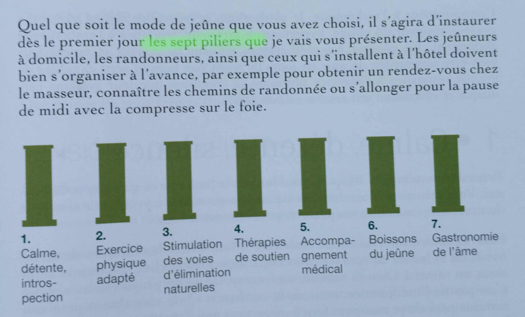 1. L’expérience d’un jeûne commence par une préparation en amont : la descente alimentaire dont la durée est égale à la durée du jeûne. Jour après jour, enlever des familles d’aliments jusqu’à consommer la veille du jeûne uniquement des légumes et des fruits, ceci pour soulager les intestins et commencer le réveil des émonctoires (les portes de sortie des toxines)