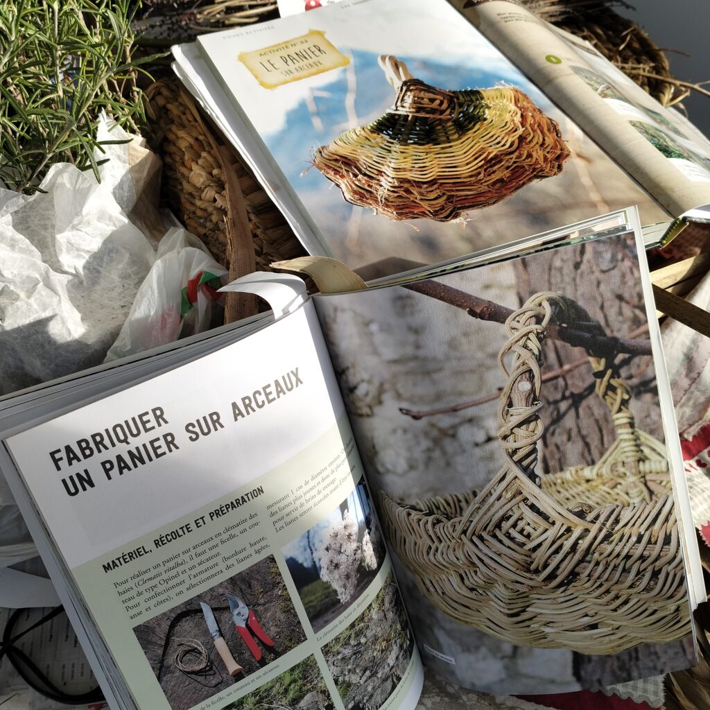 Nous fabriquerons un panier sur arceaux, que l’on trouve un peu partout dans les campagnes et que nos aïeuls tressaient à la veillée au coin du feu. Une vannerie buissonnière, des entrelacs de plantes glanées au cours d’une balade, une activité sensorielle, ludique, manuelle et naturaliste.